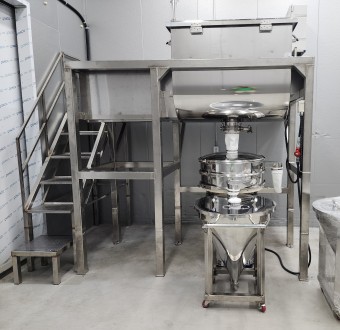 5톤 리본믹서 1200파이진동체 4m아다찌밸트컨베어 자동라인으로연결 / 5톤 리본믹서.진동체.컨베어 자동라인…